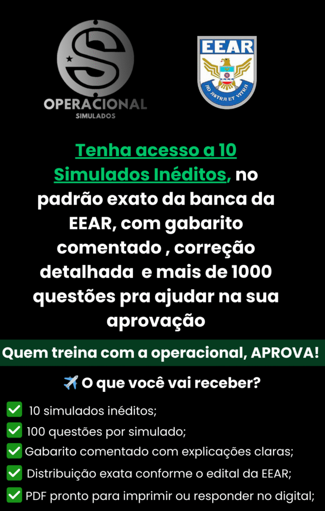 Sim! Todas as questões são criadas com base nos últimos editais da EEAR, respeitando o estilo, nível de dificuldade e distribuição por matéria.